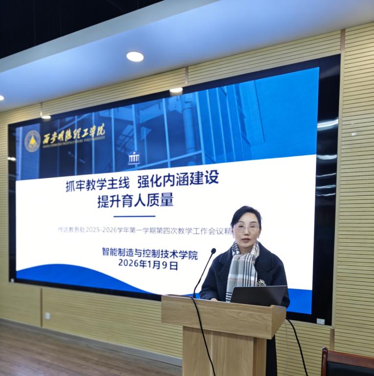 为响应学校2025-2026学年第一学期第四次教学工作会议部署,扎实推进学院教学质量提升,2026年1月9日15:30,智能制造与控制技术学院在6号建德楼201室召开专题会,传达会议精神并部署后续工作。教务处处长任华线上参会,学院教师、实验员全员参与。