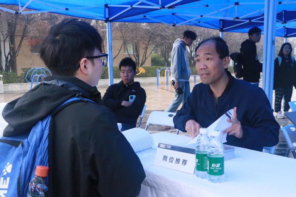 招聘会现场人头攒动,气氛热烈,参会同学精神饱满,手持简历穿梭于各个企业展位之间,与企业代表进行深入交流,了解招聘岗位要求、薪资待遇及未来职业发展,积极投递简历。学院党委书记陈雪彬在现场积极对接阎良区管委会及用人单位,引导毕业生求职应聘,针对同学们在招聘过程中遇到的问题进行答疑帮助。