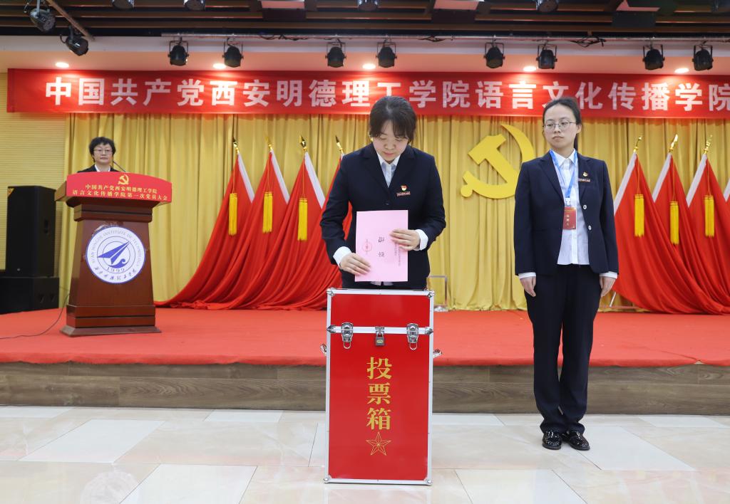总监票人徐微同志主持选举工作。全体党员正确履行选举权、认真填写选票,根据大会选举办法,以无记名投票方式选举产生了语言文化传播学院第一届党委委员。