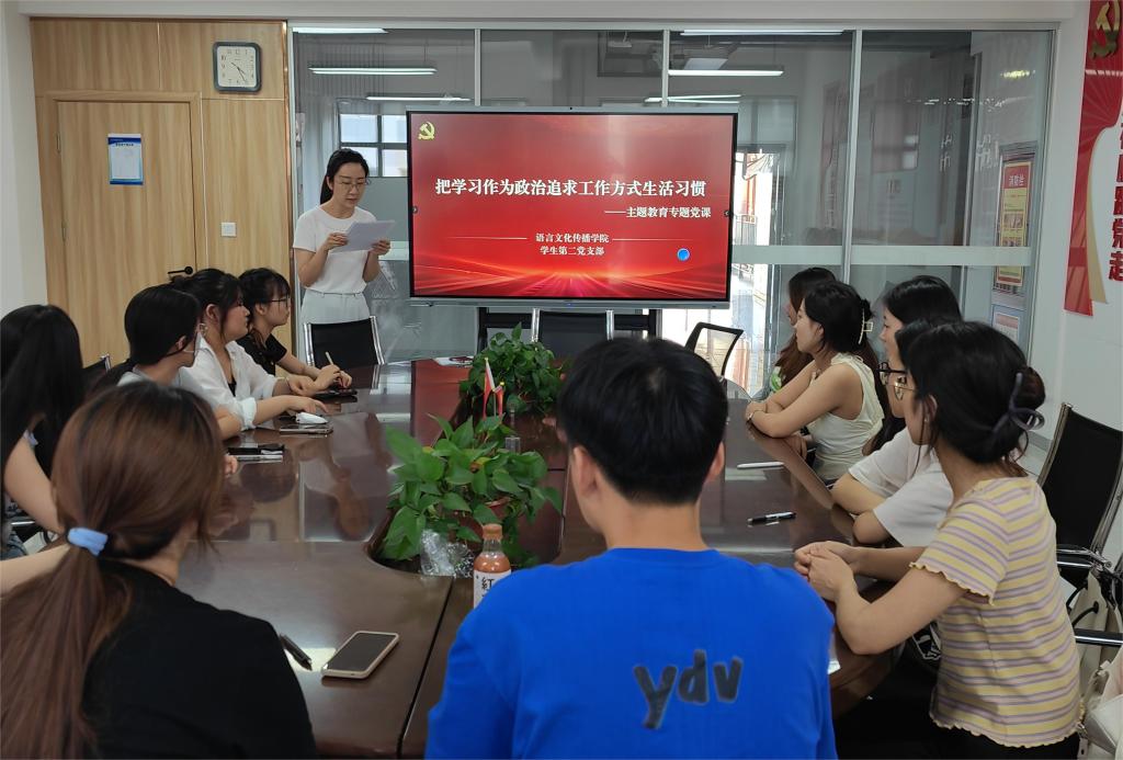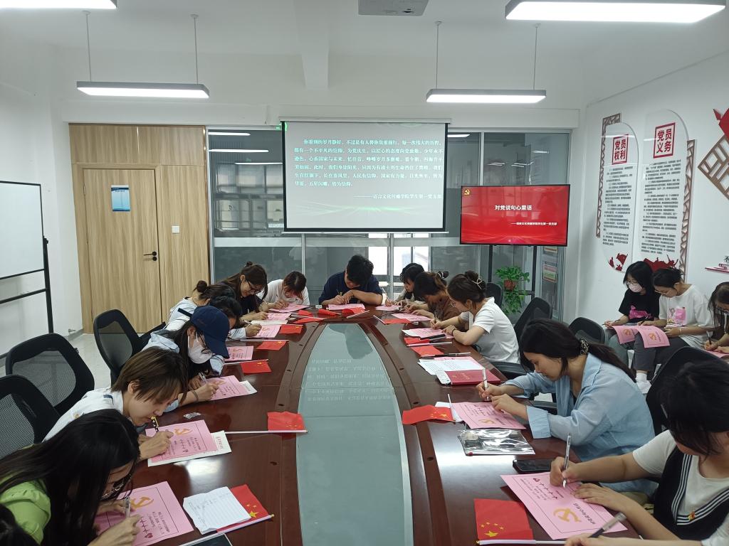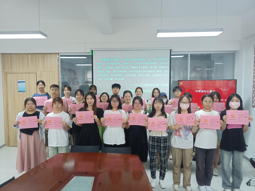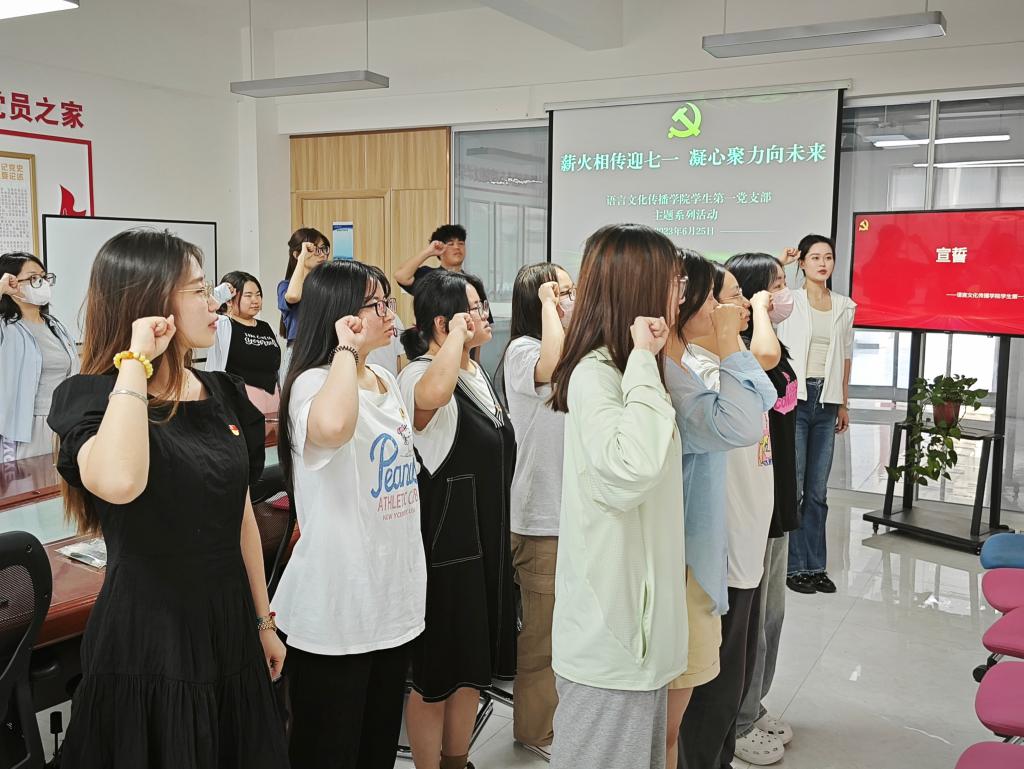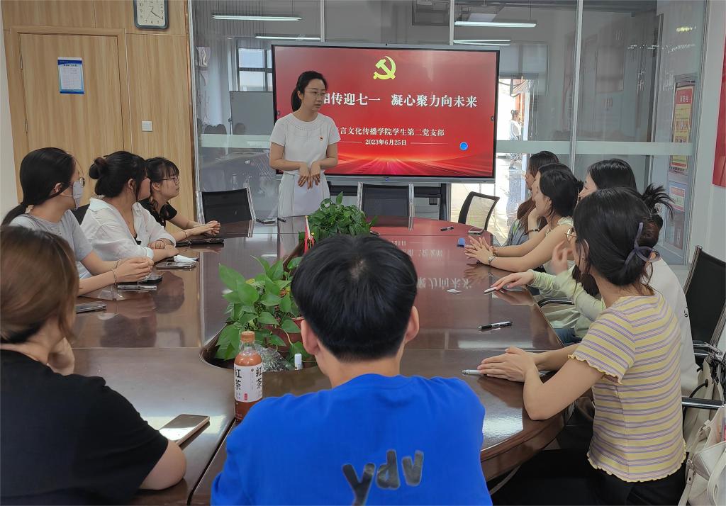 为庆祝中国共产党成立102周年,进一步提高学生党支部的凝聚力、号召力和战斗力,增强广大学生党员的光荣感、责任感和使命感,结合学习贯彻习近平新时代中国特色社会主义思想主题教育,牢牢把握“学思想、强党性、重实践、建新功”的总要求。6月25日,语言文化传播学院学生党支部举行“薪火相传迎七一 凝心聚力向未来”主题党日活动。