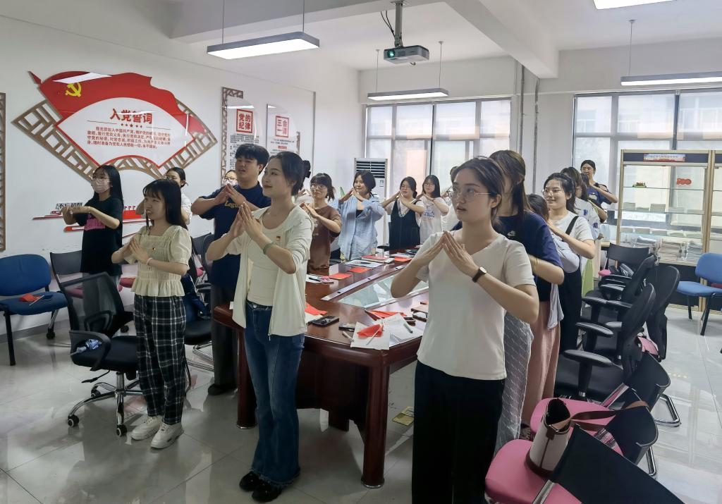 为坚定学生党员的理想信念,厚植爱国主义情怀,学生第一党支部组织全体党员同志学习《国家》手语操。伴随着音乐,同志们用优美的手语操,表达着对党、对祖国的热爱。“家是最小国,国是千万家,有国才有家。”同学们整齐划一的动作,坚定温暖的眼神,表达对党的热爱和对祖国的祝福。