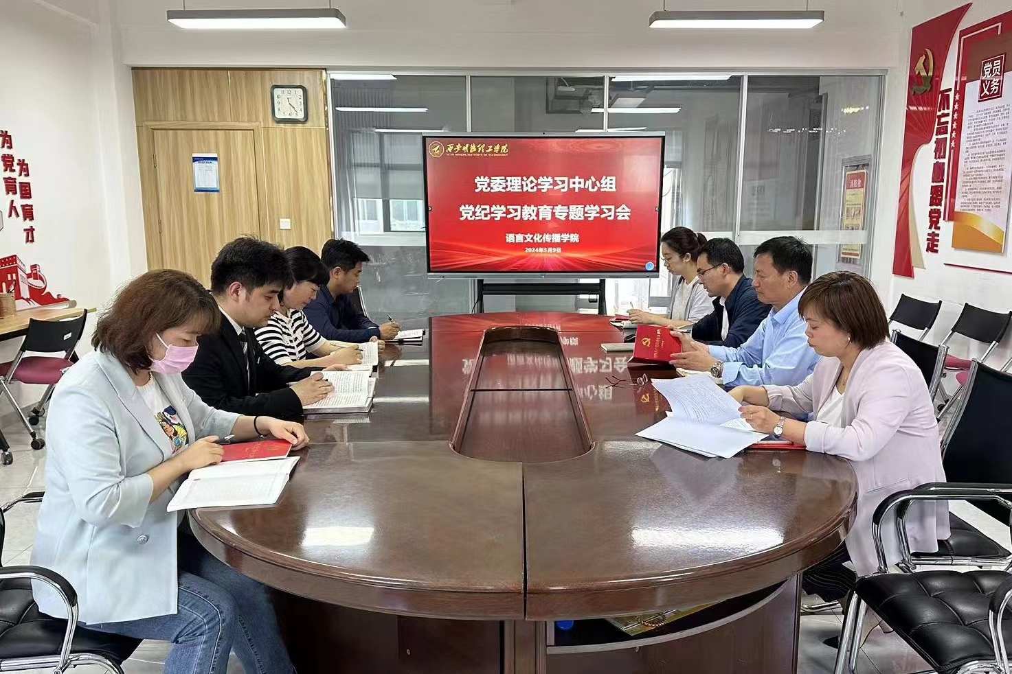 5月9日,语言文化传播学院召开党委理论学习中心组会议,专题开展党纪学习教育。学院党委理论中心组成员参加会议。会议由学院党委书记赵旭东主持。