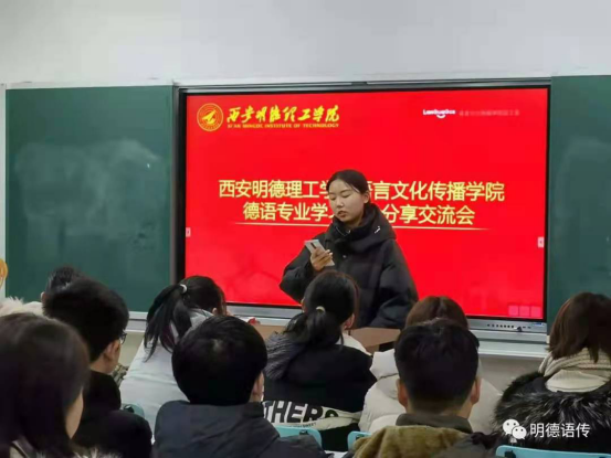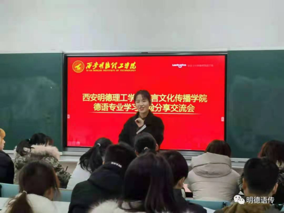 语言文化传播学院团工委于2020年12月28日19:00在树德楼311教室组织了德语专业学习经验交流会。参加此次研讨会的有2018级优秀学生代表史吟蝶、任豆以及2020级德语专业全体学生。