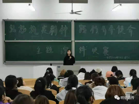 夏泽轩同学的演讲感情丰富充满活力,他向大家解读了抗疫精神的内容,并通过真实的案例,更加真切地让我们感受到人们面对疫情时的英勇无畏。