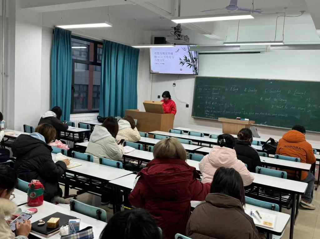 随后,王李悦同学带来了对《月亮与六便士》的独特解读。她围绕“理想与现实的博弈”这一主题,生动讲述了主人公查尔斯・思特里克兰德为追求艺术理想摒弃世俗生活的勇气与执着,同时也引导大家探讨了“月亮”所象征的精神追求与“六便士”所代表的现实生活之间的平衡之道。她结合当代大学生的成长困惑,分享了自己对“坚持理想不盲从,立足现实不妥协”的理解,赢得了现场阵阵掌声。