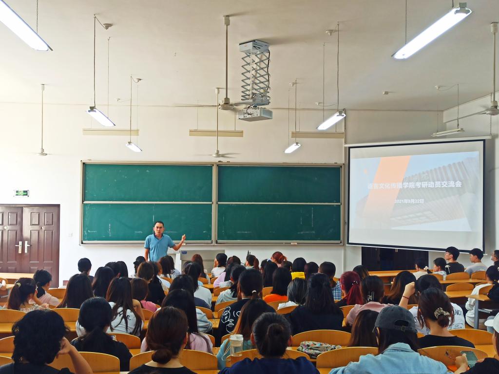 为进一步帮助学生把握考研形势,聚焦考研资讯,找准定位,9月22日,语言文化传播学院在4号楼101教室召开2022届考研动员交流会。学院党委书记赵旭东,原2017级辅导员王晓强、毕业班辅导员,2018级全体考研学生参加本次大会。