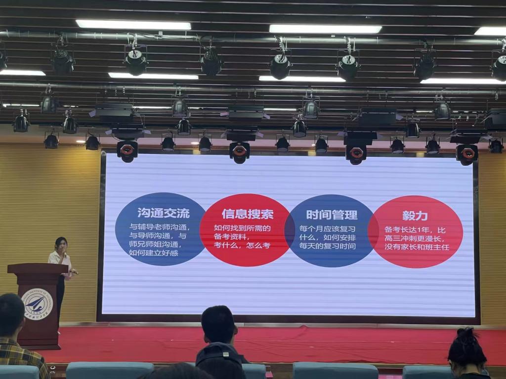 翟炜琪老师从考研大趋势分析、考研常识知识、专业院校选择、考研备考规划等四个方面进行讲解。她指出,同学们应该准确定位自己,树立合理目标,利用假期强化真题练习,梳理知识点,养成良好作息习惯,劳逸结合,正确处理好娱乐与学习关系。她强调,同学们一旦确立了目标,就应该坚持到底,努力拼搏,不负韶华。