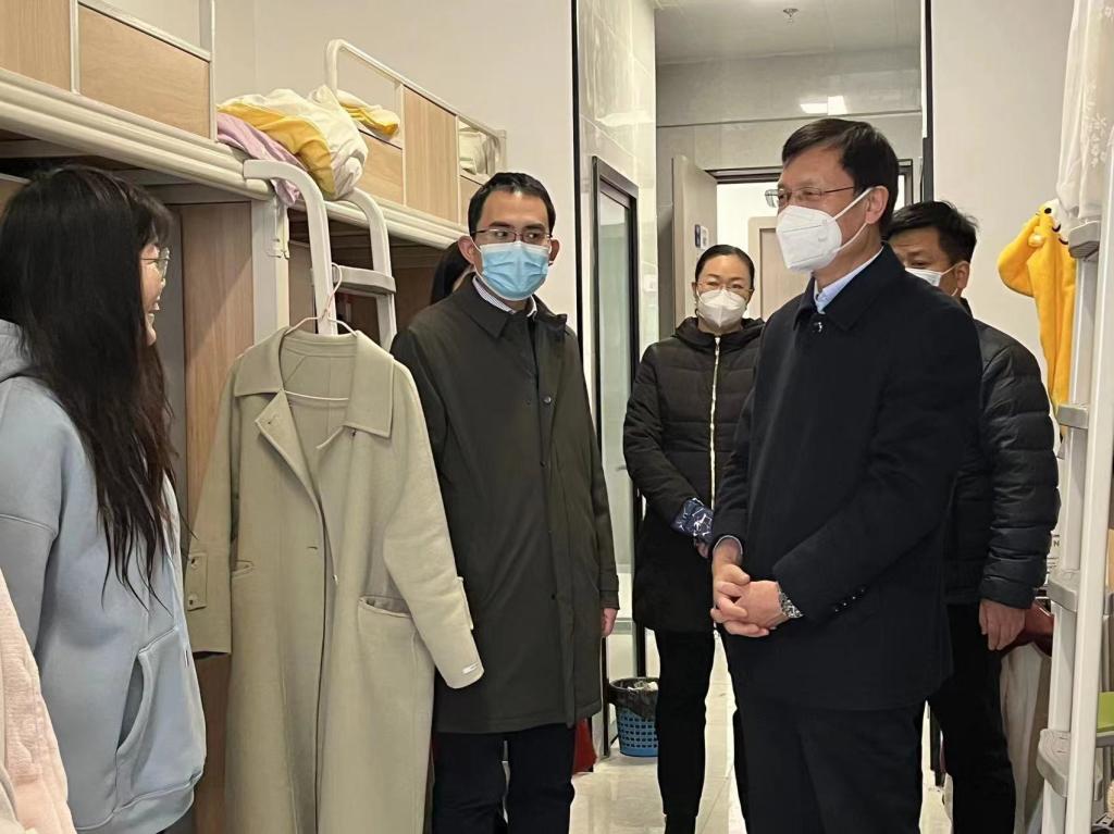 在走访过程中,学院领导仔细观察了同学们的寝室环境,每到一间宿舍,领导们都亲切问候了同学们的返校情况、学习以及生活状况,提醒同学们一定要搞好宿舍卫生,保持经常通风,加强体育锻炼,督促学生认真学习,确保学习有成效。在即将迎来因疫情延期的第一学期期末考试之际,领导们还细心叮嘱了同学们要严格遵守考风考纪,诚信应对考试,做好考前复习,保持良好心态,调整作息,一鼓作气,取得好成绩。