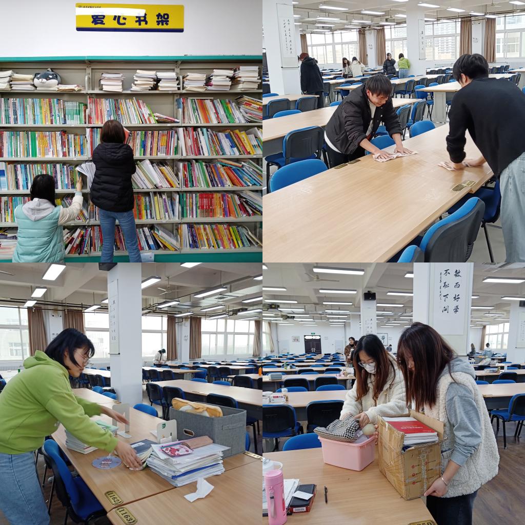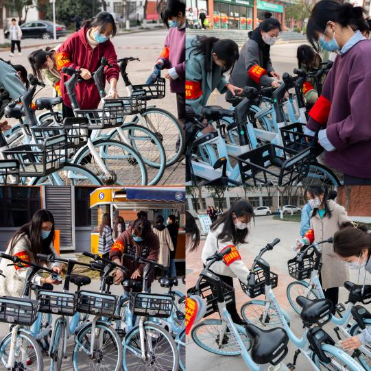 本次活动分了两个小队,终南书院研修室卫生打扫、图书整理小队和校园美化小队。小队负责人将党员们进行分组,每组人负责不同的区域进行清扫,党员们不怕脏不怕累,动作敏捷、分工明确,配合默契、齐心协力。通过自己的实际行动,为全校师生带来了干净、舒适的学习环境。校园美化小队的成员们来到共享单车停放处,看到不少单车已经满是灰尘,他们拿出抹布将车身进行清洗,将这些单车擦得干净明亮,为校园环境增添一抹亮色,经过志愿者们的共同努力,校园百余辆单车焕然一新,摆放整齐。