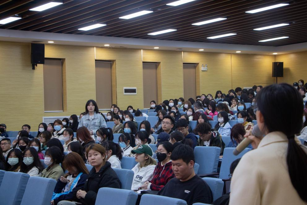 我院特邀请国家奖学金获得者刘佳程同学、“学习标兵”获得者王鑫仪同学、全国大学生英语翻译大赛一等奖获得者禹欣旻同学以及全国英语词汇竞赛一等奖获得者左心悦同学分别向同学们从学习方法、荣誉成就、社会实践等方面进行了分享交流。