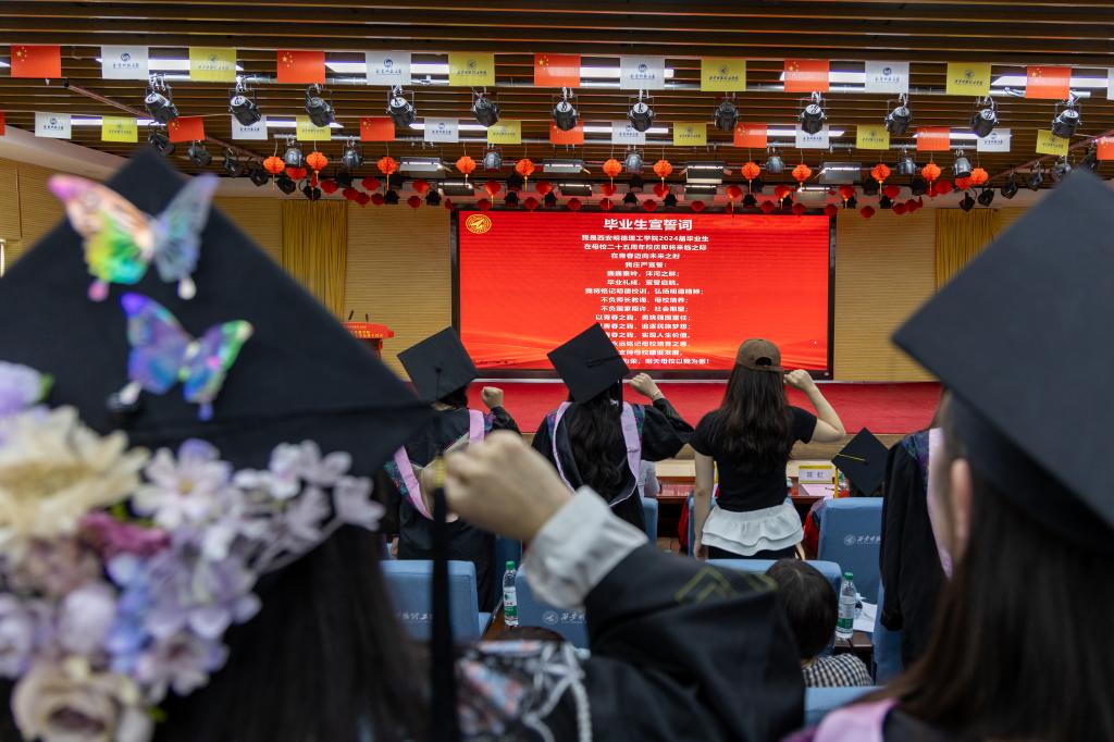 优秀毕业生代表陈立捷饱含深情地分享了在大学阶段的成长感悟,同时表达了对母校悉心培育、师长谆谆教导、同窗浓厚情谊的不舍与感恩之情。他表示要用在校所学的知识和行动准则去创造更多的价值,怀着国之大者的胸襟,肩负起小我融入大我的担当,带着学校与老师的殷切期待,用最骄傲的姿态最自信的笑容走向五湖四海,披荆斩棘,勇往直前。