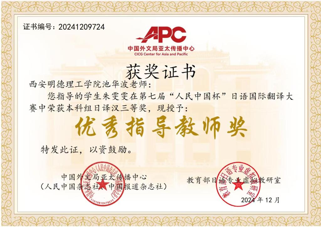 “人民中国杯”日语国际翻译大赛作为国内规模最大的日汉互译赛事,吸引了全国700多所高校万余名学生参加。在语言文化传播学院日语专业教师团队的认真指导下,共有6名同学参加了本次翻译大赛。其中,2名21级同学凭借过硬的日语基础和出色的翻译能力脱颖而出,在大赛中取得了优异成绩。