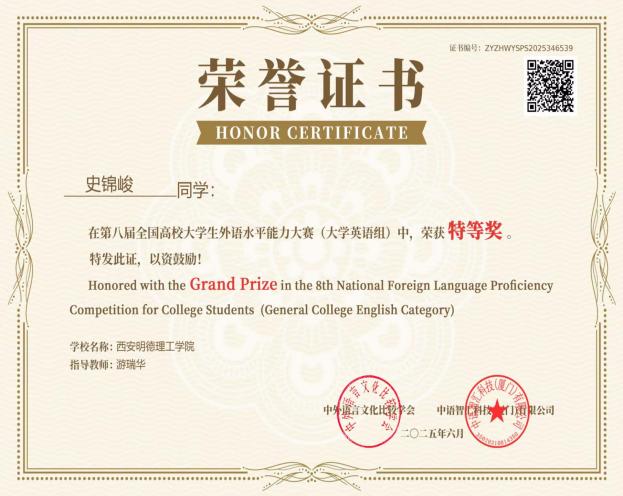 由中外语言文化比较学会主办的第八届全国高校大学生外语水平能力大赛(大学英语组)全国决赛于2025年6月7日圆满落幕。本届大赛秉持“以赛促教、以赛促学、以赛促练”的办赛理念,全面覆盖听力理解、阅读理解、写作能力和翻译技巧等多维度能力考核,为全国大学生搭建了一个高水平的英语综合能力展示平台。beat365高度重视此次赛事,精心组织动员,最终吸引228名优秀学子踊跃报名,展现出极高的参赛热情与竞技精神。