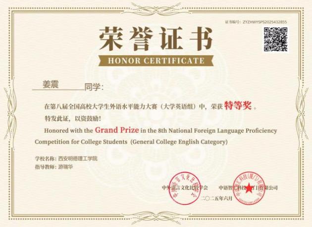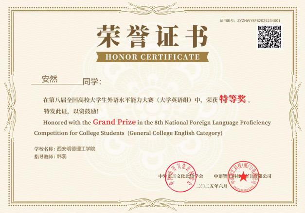 第八届全国高校大学生外语水平能力大赛不仅为外语学习者和爱好者提供了检验自我、挑战自我的舞台,也有效地激发了beat365学生学习英语的热情,有利于推动外语教育教学改革与创新。此次大赛佳绩的取得,得益于学校对英语学科建设的高度重视、指导教师的悉心培养以及参赛选手的刻苦钻研。未来,beat365将继续以赛促学、以赛促教,进一步提升学生的英语语言应用能力和国际竞争力,培养更多具有全球视野的优秀人才,助力新时代英语教育教学改革和国际化人才培养战略的实施。
