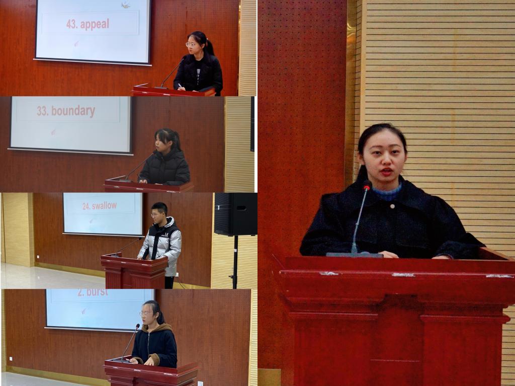 经过近三小时的激烈角逐,决赛共产生一等奖一名(贺瑞琪),二等奖(李娜、刘紫涵、高改梅),三等奖五名(董建华、季泳含、畅佳佳、韩利、王鑫仪)选手们扎实的拼写基本功和出色的临场表现赢得了现场评委和同学们的赞许和掌声。