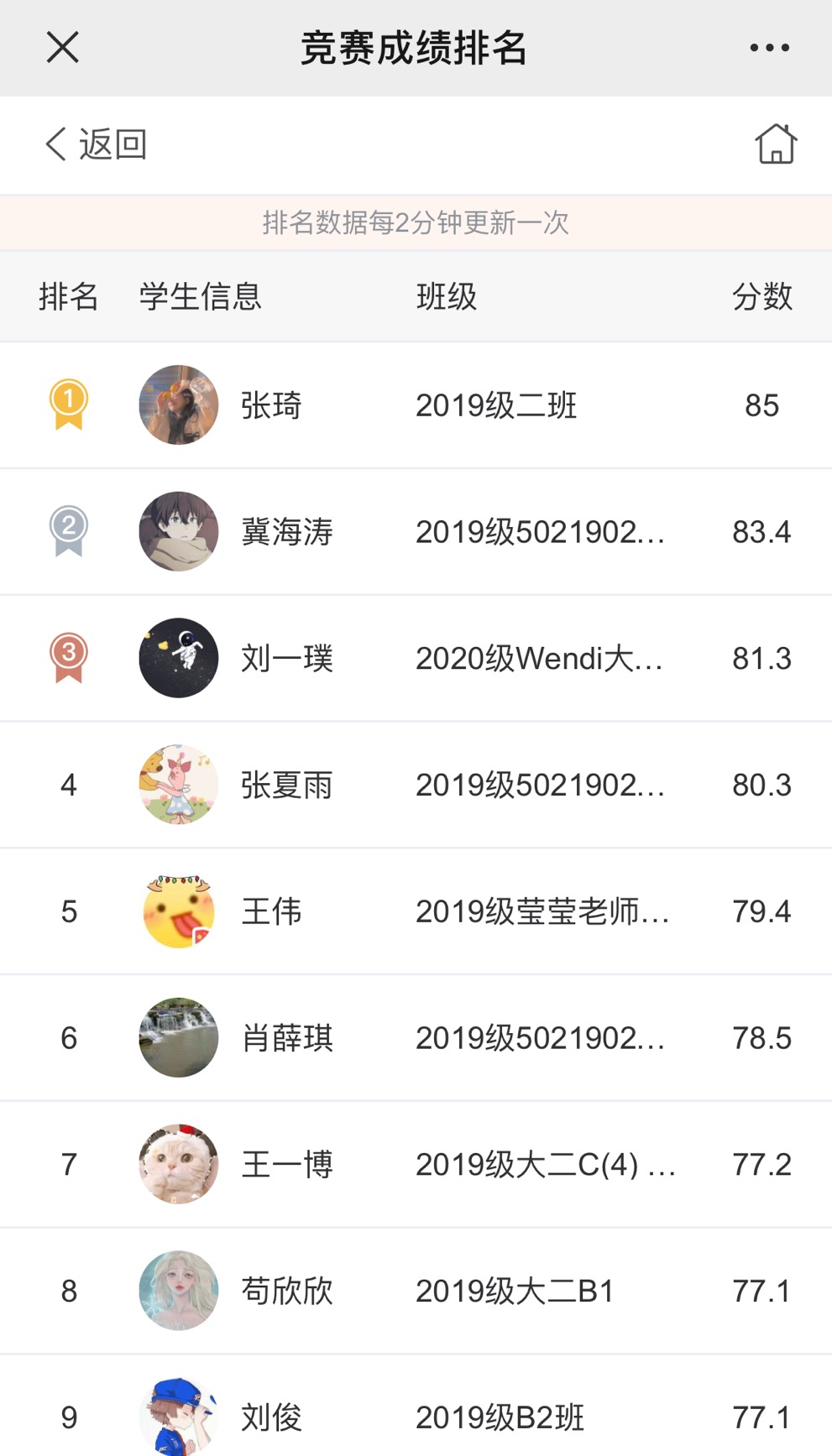 同校不同级的学生们借助平台进行了一场云端的激烈比拼,展现出了极高的积极性和主动性,也取得了可喜的成绩。学生们秉着查缺补漏重在参与的理念,有效地检验了自己的学习效果也为beat365大学英语教学的有效开展拓宽了渠道。