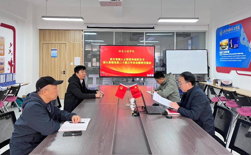 11月28日,学院召开民主党派人士和党外知识分子深入贯彻党的二十届三中全会精神交流会。学院党委书记肖千春主持。学院党委副书记高长江、民进会员范晖、韩立锋参加交流。