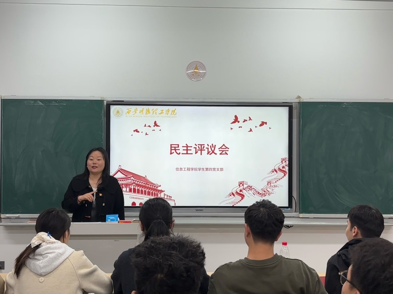 2025年3月12日下午18:00,信息工程学院学生第四党支部在1号培德楼105召开组织生活会及民主评议党员工作会议。会议由党支部书记张喜慧同志主持,支部全体党员同志参加。