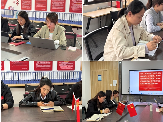 为了进一步统一思想,支部安排了学习研讨交流环节。党员们结合自身工作实际,围绕如何贯彻落实中央八项规定精神,加强作风建设展开了分享交流。杜彩丽老师说:通过学习中央八项规定精神,我深刻认识到作风建设是党永葆生机活力的关键,也是教育工作者立德树人的根基。王芸老师说:作为高校教师,我深刻认识到,八项规定不仅是党内作风建设的重要标尺,更是我们践行立德树人根本任务、涵养师德师风的行为准则。罗彤瑶老师说:在高等教育领域深入学习中央八项规定精神,深感作风建设对学术生态建设的引领作用。作为大学教师,不仅要在学术研究中勇攀高峰,更应在师德修养上率先垂范,让清正之气浸润学术殿堂。刘佳颖老师说:作为通信工程教师践行中央八项规定要做到:廉洁从教,严谨治学;立足国家需求,培养科技人才;力戒形式主义,优化教学方法;强化师生交流,担当育人使命。