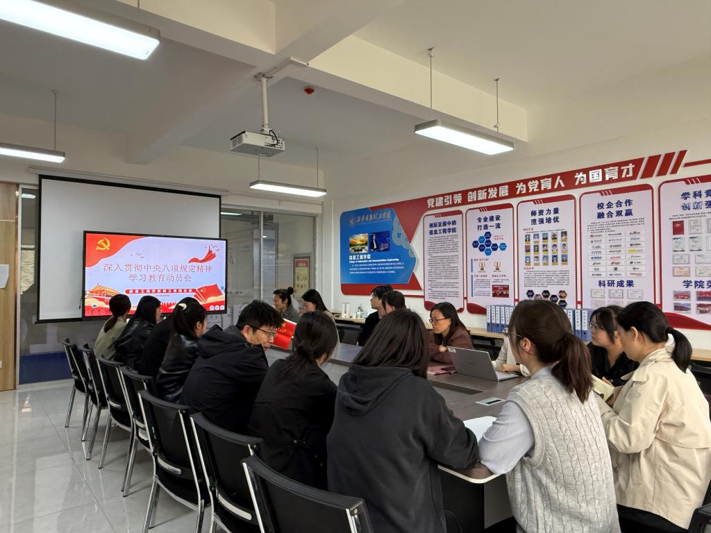2025年3月26日,学院教工第四党支部组织开展了深入贯彻中央八项规定精神学习教育动员部署会。此次活动旨在引导支部党员深刻领会中央八项规定精神的重要内涵,进一步锤炼党性、提高觉悟,密切党群关系,营造风清气正的校园政治生态。