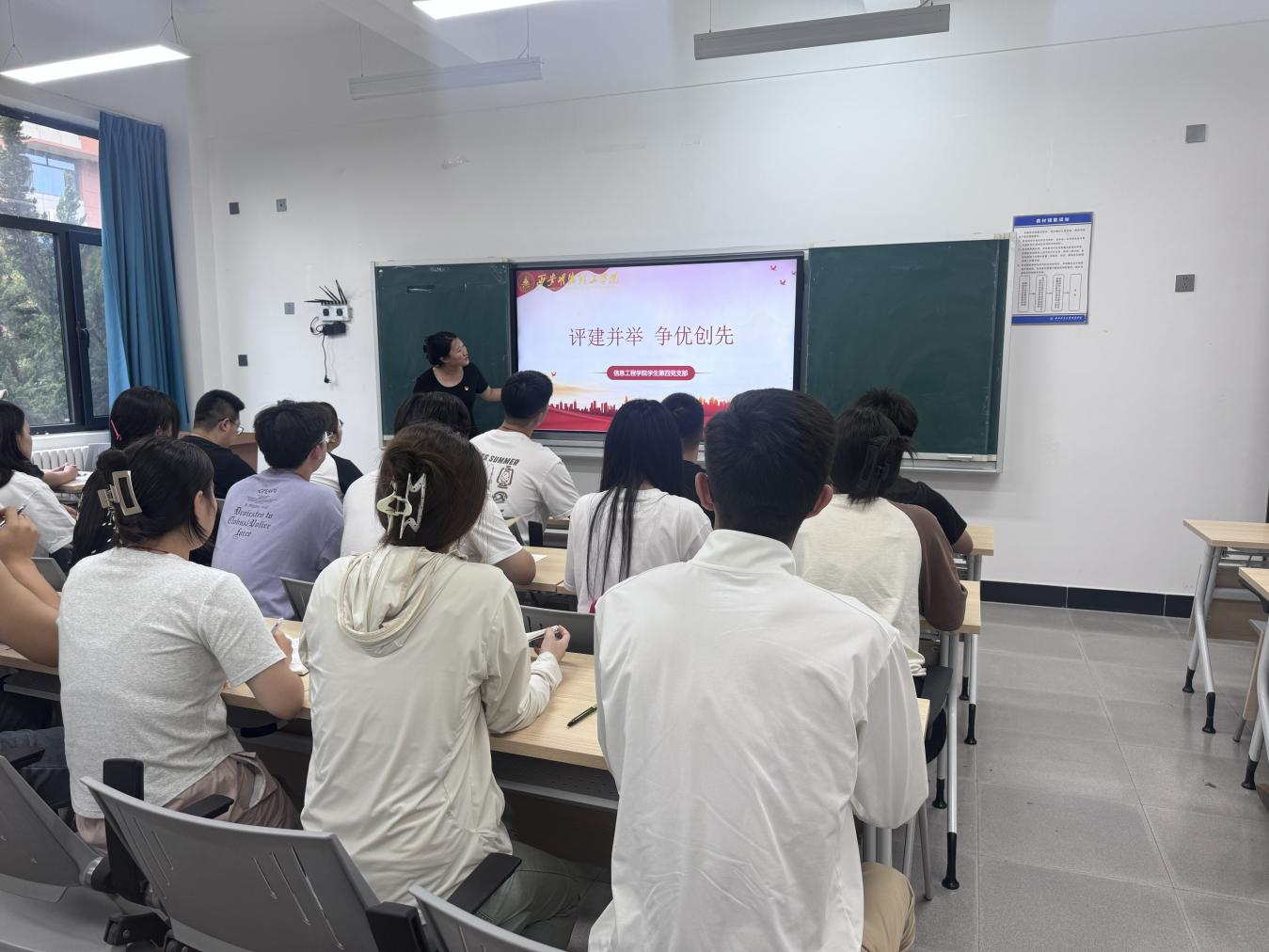 2025年6月30日,信息工程学院学生第四党支部在培德楼108开展了“评建并举争优创先”主题党日活动。活动旨在深化全体党员对学校本科合格评估重要性的认识,凝聚党员力量为学院评建工作贡献力量。
