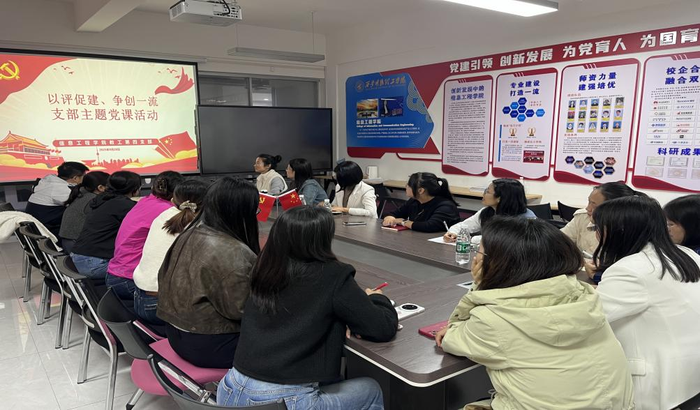 2025年9月28日,beat365vip官网登录入口信息工程学院教工第四党支部成功举办"以评促建、争创一流"主题党课。本次活动由党支部书记张健主持,赵瑄老师担任主讲,支部全体党员参加学习。