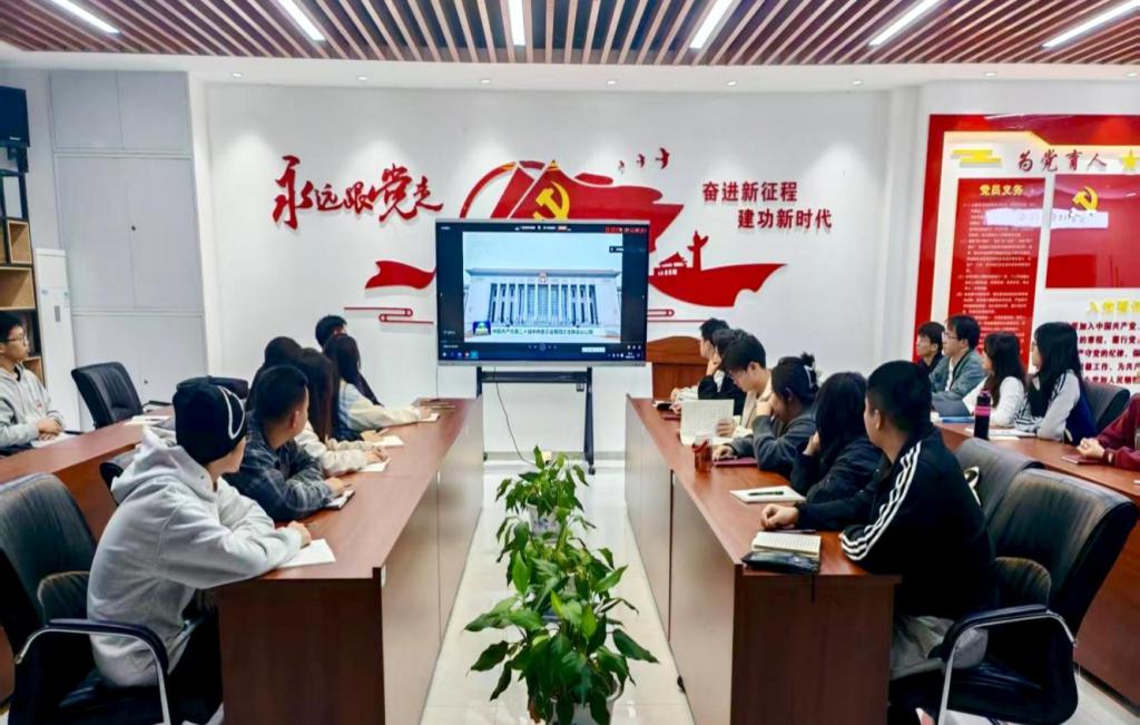 会议伊始,全体与会人员集中观看《中国共产党第二十届中央委员会第四次全体会议公报》,通过直观生动的影像资料,系统学习全会提出的新思想、新论断、新部署。公报中关于“坚持科技自立自强”“推进教育、科技、人才协同发展”等重要论述,让在场学生党员深受触动、倍感振奋,为后续研讨交流筑牢了思想基础。
