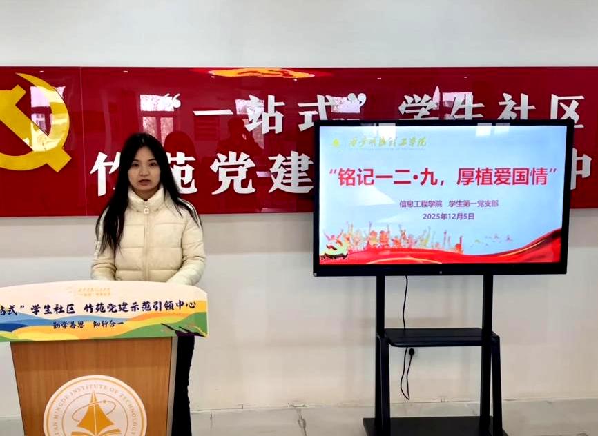 为纪念“一二・九”运动九十周年,传承红色基因,引导支部党员厚植爱国情怀、强化使命担当,在新时代征程中砥砺奋进。12月5日,信息工程学院学生第一党支部在“一站式”学生社区竹苑党建示范引领中心开展“铭记一二・九,厚植爱国情”主题党日活动。活动由支部书记张蓉主持,全体党员参加。