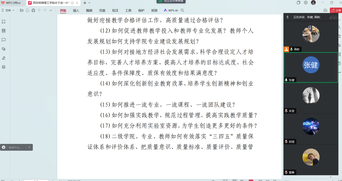 支部书记张健带领全体党员进行了全面深刻的思想大讨论,主要包括:一流课程及课程思政组队安排;实验室管理及利用,实验室介绍文的集体审读;初探质量保障体系专业层面如何构建;以及北斗学院理事会章程审读。关于一流专业、一流课程和课程思政的建设,张健书记指出只有组织起强健的队伍才能解决难题,改革发展工作,推进教育教学质量,鼓励各位党员积极申报课程和项目,为建设一流专业出一份力。随后张书记提出了实验室管理方面相关要求,主要问题在于如何提高实验室利用率,并且反馈了开放实验室申报情况,坚持本专业对于应用型人才培养目标设定的方向,为学生提供丰富多元的实践实验环境。接着,为加强教育教学过程管理,提高教育教学质量,明确了教学改革和教学研究的方向。会议最后全体党员审读北斗学院理事会章程并提出意见和建议。