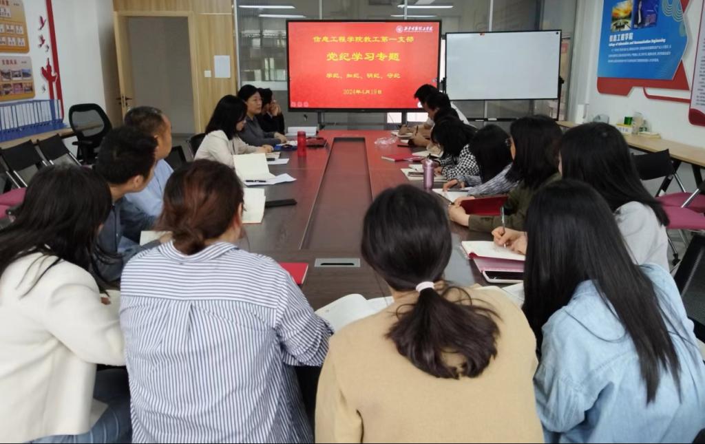 为了进一步加强党的纪律建设,统一思想、统一行动、知行知止、令行禁止。4月19日,信息工程学院教工第一党支部召开支部大会,会议传达了《中共beat365vip官网登录入口委员会关于开展党纪学习教育的实施方案》和学院党委的工作要求,重点学习了习近平总书记关于党纪学习教育的重要指示精神,并就党支部开展党纪学习教育进行了安排部署。