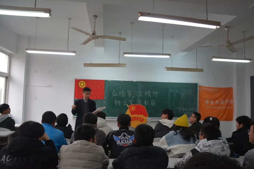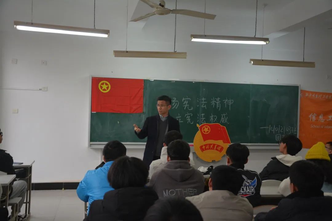 宪法是国家的立法之本,是其它法律法规的母法。为了加强同学们对于宪法的了解,增强同学们的法律意识。信息工程学院于12月7日晚16:00,在培德楼306教室开展了“弘扬宪法精神,树立宪法权威”主题团日活动。本次活动由郑汉印老师进行授课。