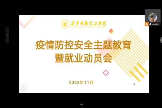 大四第一学期已过半,根据目前疫情防控形势和就业情况,会议主要从三方面内容展开:一是在疫情防控期间,在校外实习、出校线下面试等活动一定要做好个人防护,做好个人身体健康的第一责任人;二是就毕业生在毕业实习期间须完成的学习任务、时间安排、毕业论文写作等,进行了明确具体的工作布置;三是动员并鼓励全体毕业生要脚踏实地、积极主动的落实就业相关工作,早日实现自己的就业目标。