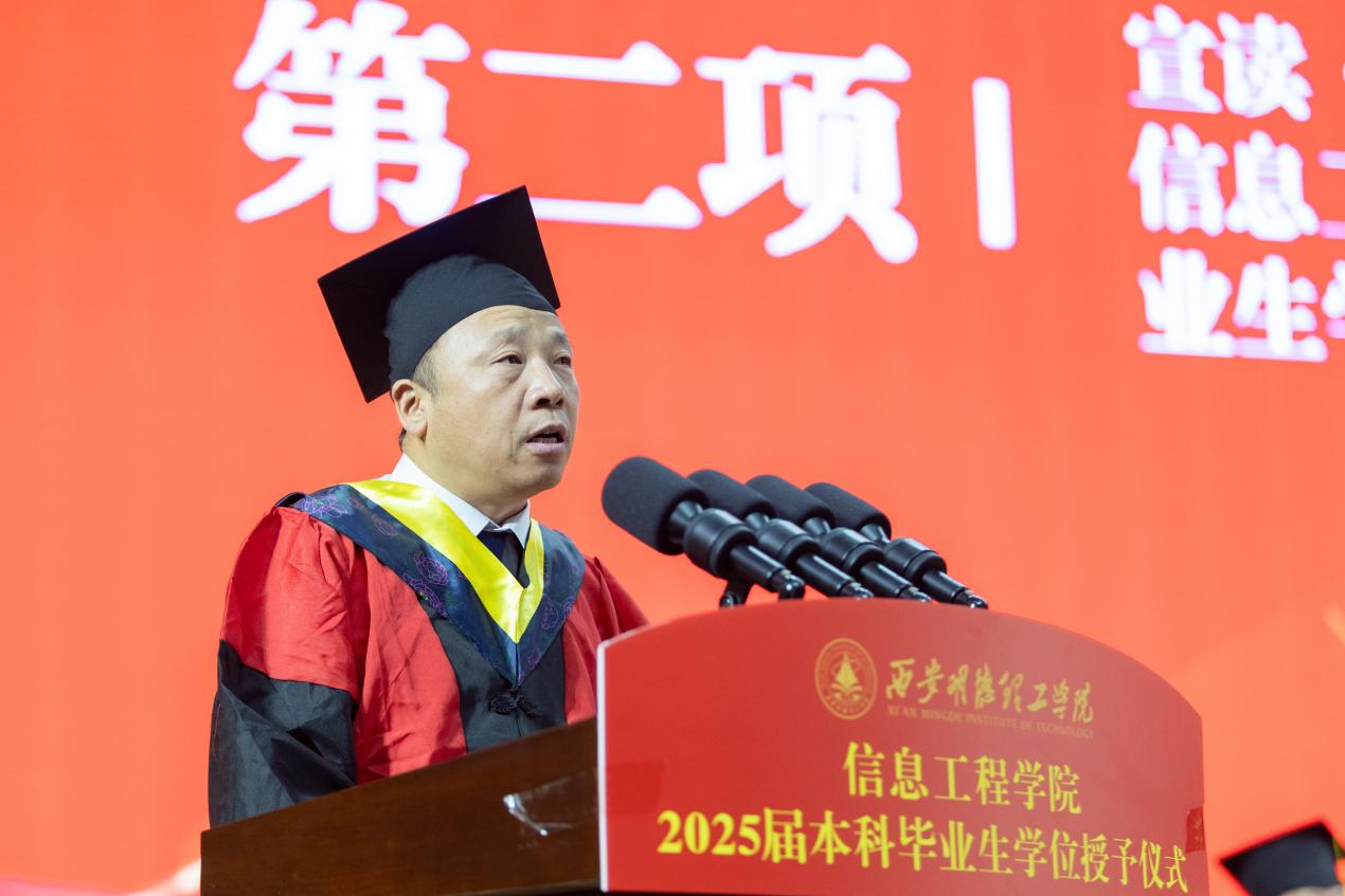 学院副院长范晖宣读《beat365vip官网登录入口关于信息工程学院2025届本科毕业生学士学位授予的决议》。