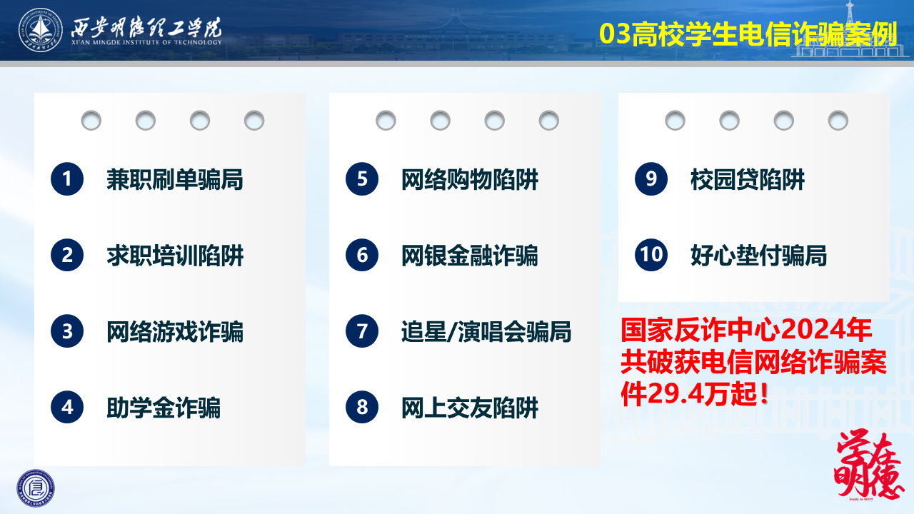 主题教育班会中,安全教育成为首要强调的内容。辅导员提醒学生,无论是选择公共交通出行,还是自驾出游,都务必严格遵守交通规则,警惕交通隐患,防止意外发生。此外,针对电信诈骗手段日益多样的现状,辅导员通过案例分析,向学生介绍了常见的诈骗类型及防范方法,提醒学生时刻保持警惕,守护好个人财产安全。各年级对标自身实际情况,对可能存在的安全隐患不断增强防范意识。外出实习过程中,严格遵守实习单位工作要求,配合带队老师完成实习内容,因病因事严格履行请假手续。