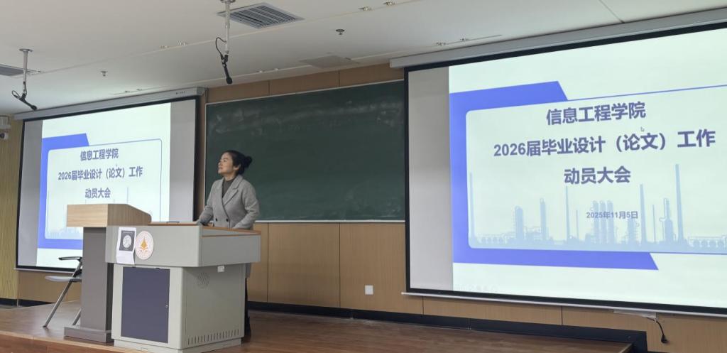 为精准部署2026届毕业设计(论文)各项工作,确保人才培养质量与学术研究规范落地,2025年11月6日下午,信息工程学院隆重召开2026届毕业设计(论文)启动动员大会。大会由副院长张健主持,院长冯强及全体2026届指导教师参会,为即将开启的毕业设计之旅筑牢基础、指明方向。