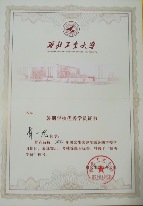 肖一凡同学获得研究生优秀生源资格,将在报考2021年硕士研究生时,在初试成绩达到报考专业的复试分数线时,同等条件下优先录取,优先向优秀导师推荐,并在申报西工大各类研究生项目时优先。