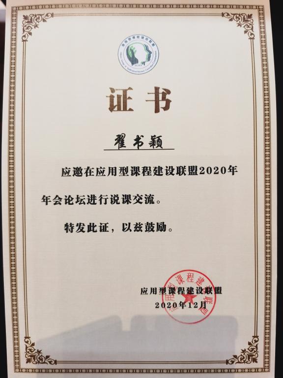 我院翟书颖老师应邀就《物联网导论》课程做说课交流,从多年的教学教改经验出发,分享了基于社会主义核心价值观引领下的课程设计,从课程概述、教学设计、教学环境、教学方法、创新特色、教学效果等方面生动地交流了课程改革的经验,并获得证书。