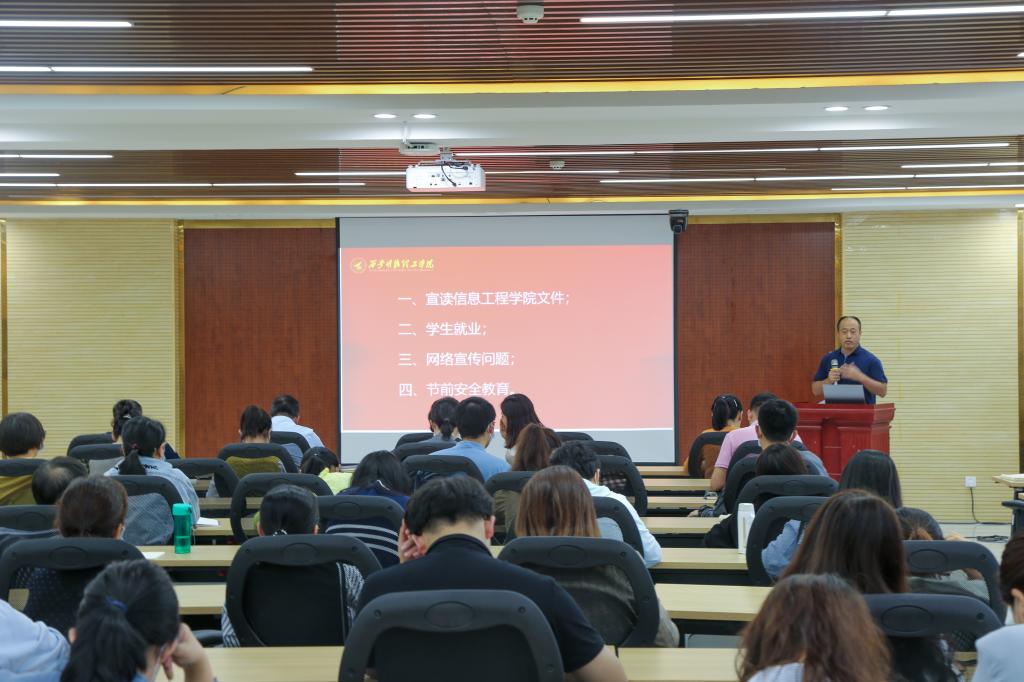 9月30日中午,信息工程学院在明志楼311报告厅召开新学期工作大会,总结评价2021年上半年工作,安排部署本学期工作。院长王丽芳、副院长魏瑾、黄烨、党委书记李波及全体教职工参加了会议。会议由办公室主任尹莹主持。