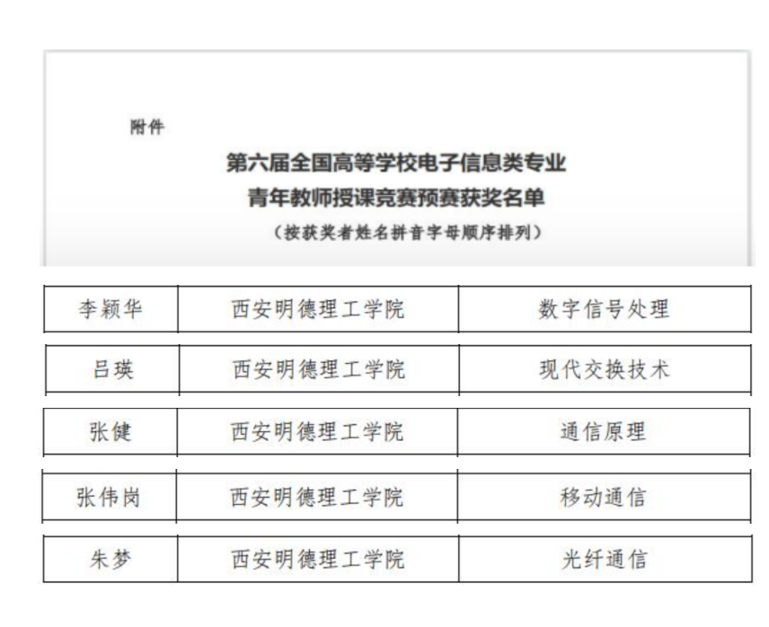 2022年9月16日,第六届全国高等学校电子信息类专业青年教师授课竞赛预赛结果公示,beat365信息工程学院五名教师获得华西赛区三等奖。