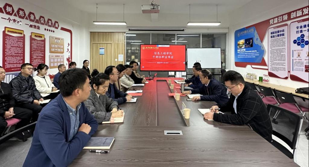 2023年11月10日下午,信息工程学院干部任职宣布会在明志楼北206会议室召开。校长王志刚、副校长白秦川、党委组织宣传部部长高超、人力资源处副处长康抗出席会议。信息工程学院领导班子、专业负责人及教师、管理、技术、辅导员代表参加会议。会议由副校长白秦川主持。