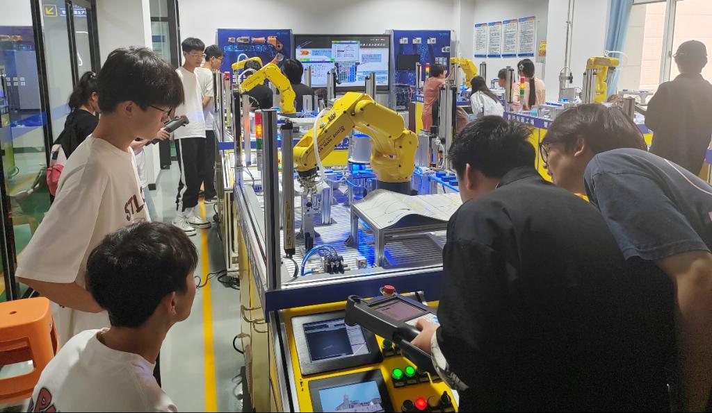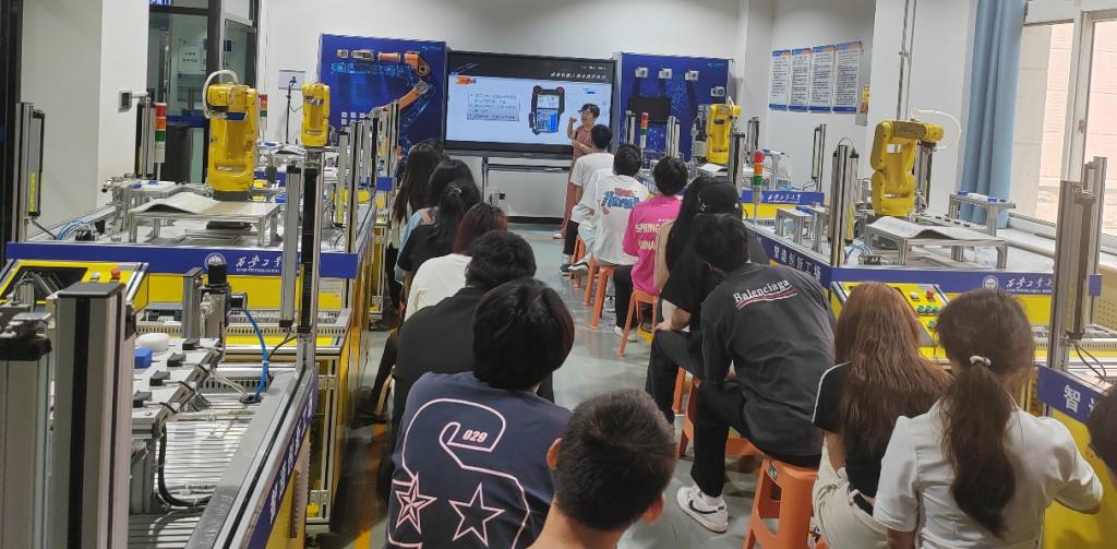 本次认识实习学生分为两组,分别进行实践操作,学生们表现出了极高的热情和积极性。他们认真听取指导老师的讲解,仔细操作实验设备,积极讨论遇到的问题和解决方案。在工业机器人基础训练平台上,学生通过不断尝试和调试,成功操作桌面机器人手臂,通过编写程序实现机器臂的定点移动。