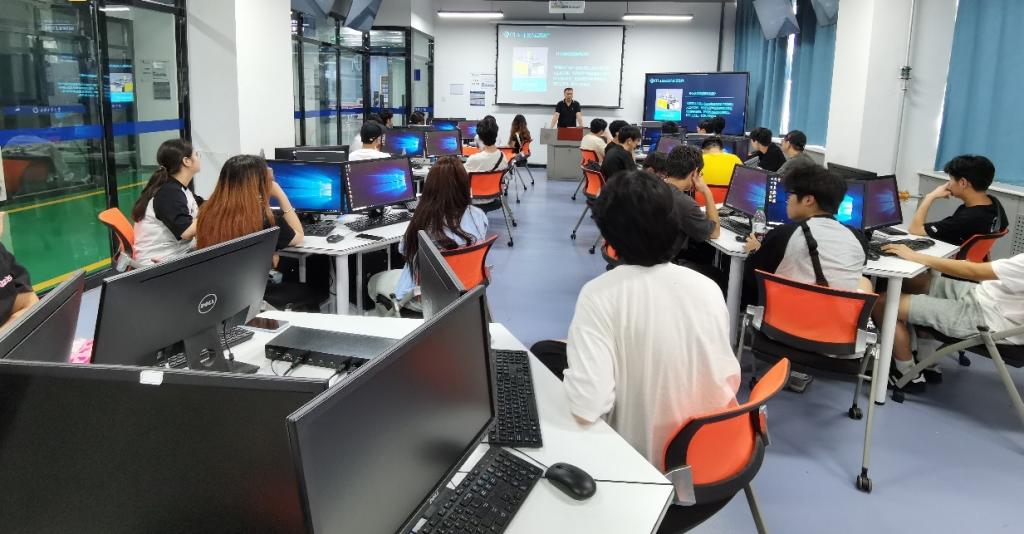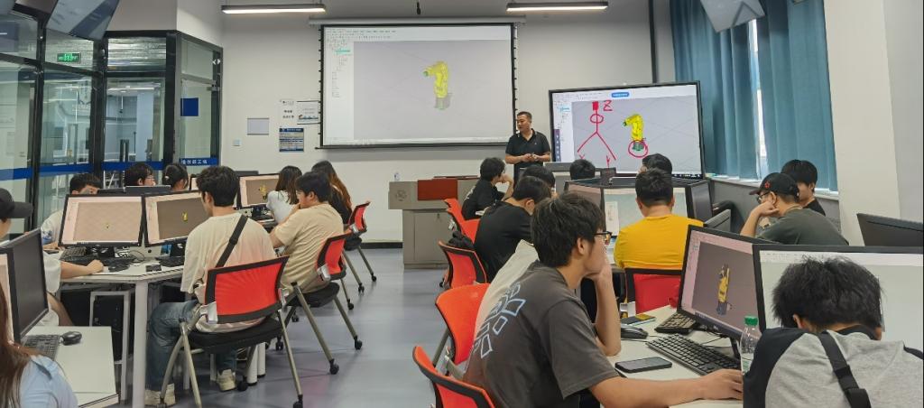 在工业机器人虚拟仿真开发创新平台上,学生在老师的指引下,进行了模拟操作和程序设计,进一步加深了他们对工业自动化和智能制造的理解。