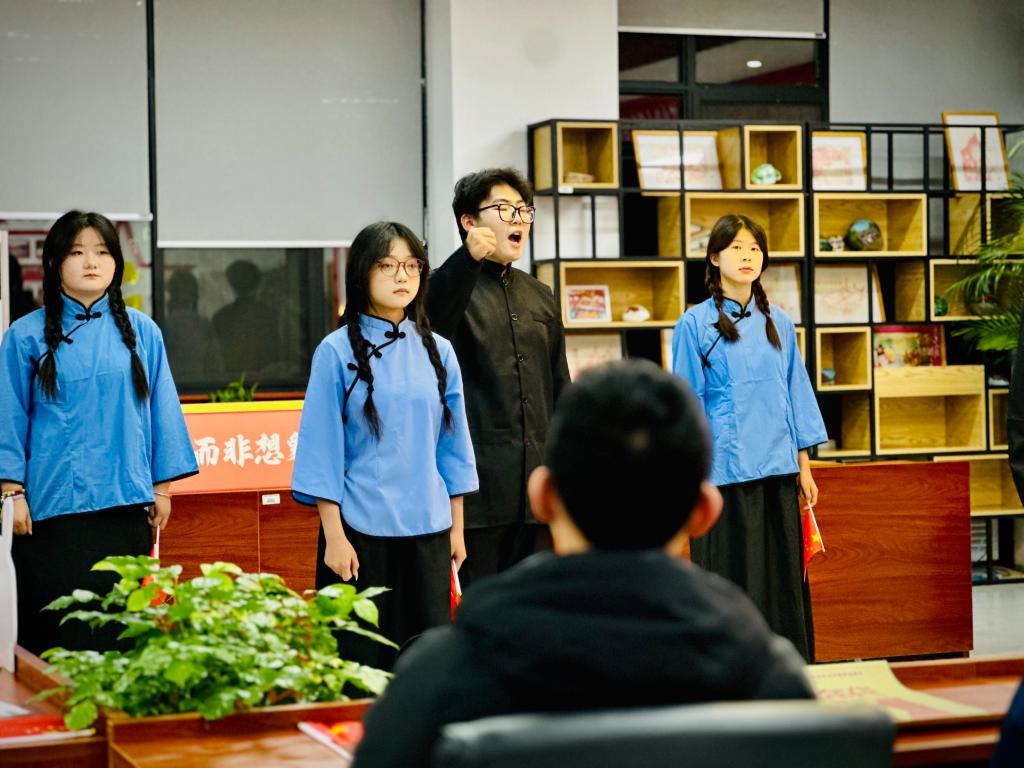 6名信工学子在观看该剧后,有感而发创作的《觉醒》朗诵表演震撼全场。他们以激昂的声调、真挚的情感,颂出时代强音,声声誓词、阵阵呼喊,瞬间将师生带回风云激荡的觉醒年代,令众人深切体悟先辈热血豪情,传承红色基因的使命感油然而生。