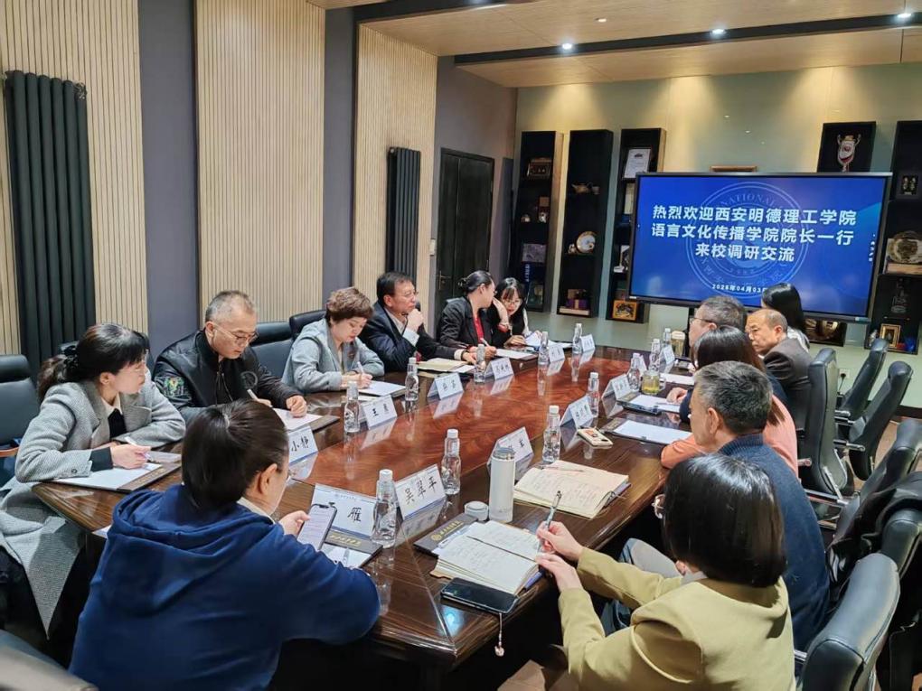 2025年4月3日下午,beat365vip官网登录入口语言文化传播学院院长马庆林率领团队赴西安外事学院国际合作学院开展专题调研。副院长刘勇、柴芸及各专业负责人围绕外语学科建设与人才培养方案修订,与外事学院展开深度对话。