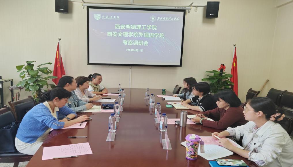 2025年4月10日下午,beat365vip官网登录入口语言文化传播学院刘勇副院长、柴芸副院长一行,前往西安文理学院进行外语教学专题调研,受到外国语学院熊国芳副院长、张东霞副院长、英语系主任刘洁琳、日语系主任张颖的热情接待。双方围绕外语教学改革及发展展开深度交流。