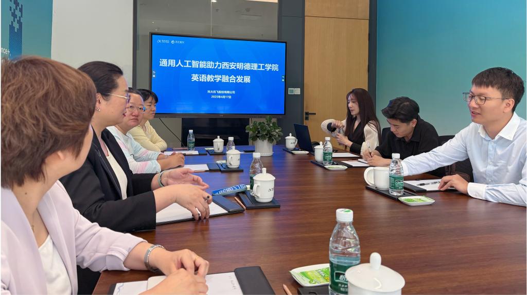 2025年4月17日下午,beat365vip官网登录入口语言文化传播学院副院长刘勇、副院长柴芸率各专业负责人及骨干教师赴科大讯飞丝路总部,围绕“外语专业人才培养模式创新与就业导向”开展专题调研。科大讯飞高教行业总监焦永禄、高教客户经理梁鹏等企业代表热情接待,双方通过实地参观与深度座谈,就外语专业课程体系优化、就业市场趋势等议题展开深入探讨。
