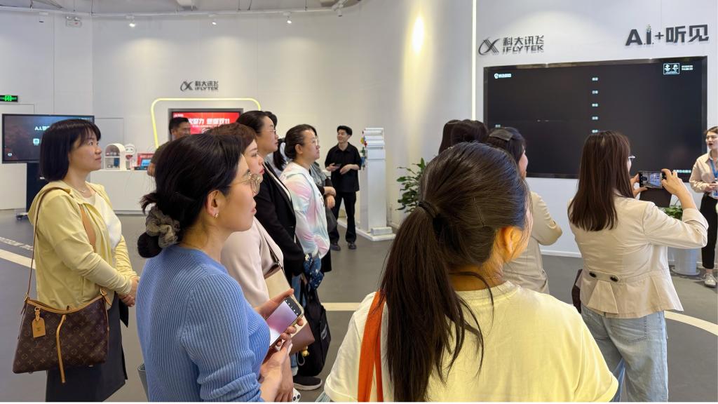 调研组一行首先参观了科大讯飞丝路总部展厅,全面了解企业在人工智能、大数据、语音识别等领域的核心技术突破,以及智慧教育、智慧城市等领域的创新应用案例。刘勇副院长表示:“科大讯飞作为全球领先的人工智能企业,其技术成果为外语专业教学提供了全新的思路,期待通过校企合作探索‘AI+语言’的融合路径。”