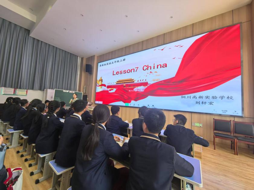 铜川市高新实验小学对此次见习活动高度重视,郭东霞校长亲自布置安排。全体师生首先观摩了刘轩宏老师给小学5年级学生讲授的英语示范课。这堂课以“China”为主题,刘老师通过生动有趣的教学方式,将思政元素巧妙融入英语教学中,引导学生积极参与课堂互动,充分展现了扎实的教学基本功和独特的教学魅力。在场的学生们全神贯注地聆听,认真记录每一个教学环节和细节,深刻体会着小学英语教学的特点和技巧。