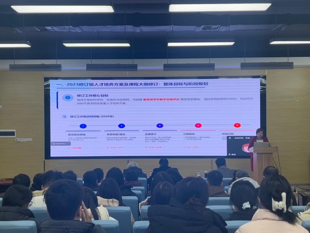 学院副院长柴芸就学期末教学工作安排进行部署。她首先传达了学校2025-2026学年第一学期第四次教学工作会议精神,围绕人才培养方案与课程大纲修订、期末考试命题与阅卷、下学期排课、课堂教学质量、毕业论文质量管理、实习基地建设、实验室管理等八个方面进行了详细安排强调,全体教师要高度重视近期教学检查中存在的问题,严格落实整改要求,注重教学过程的规范性与创新性,在试卷设计、课堂管理、毕业论文指导等方面必须做到严谨细致、提质增效。