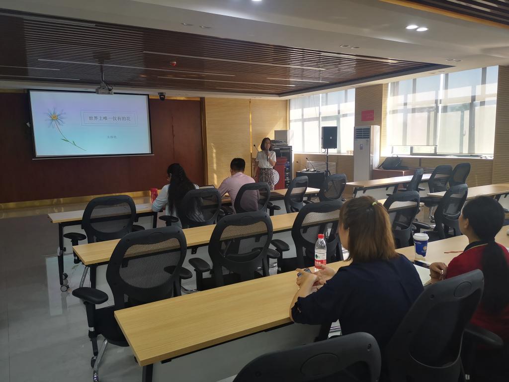 最后,青年教师代表张格艳老师以“世界上唯一仅有的花”为主题分享了教学经验。她提出要尊重爱护每一位学生,开展分层教学,不断学习好的教学方法,提升学生的成就感和获得感。